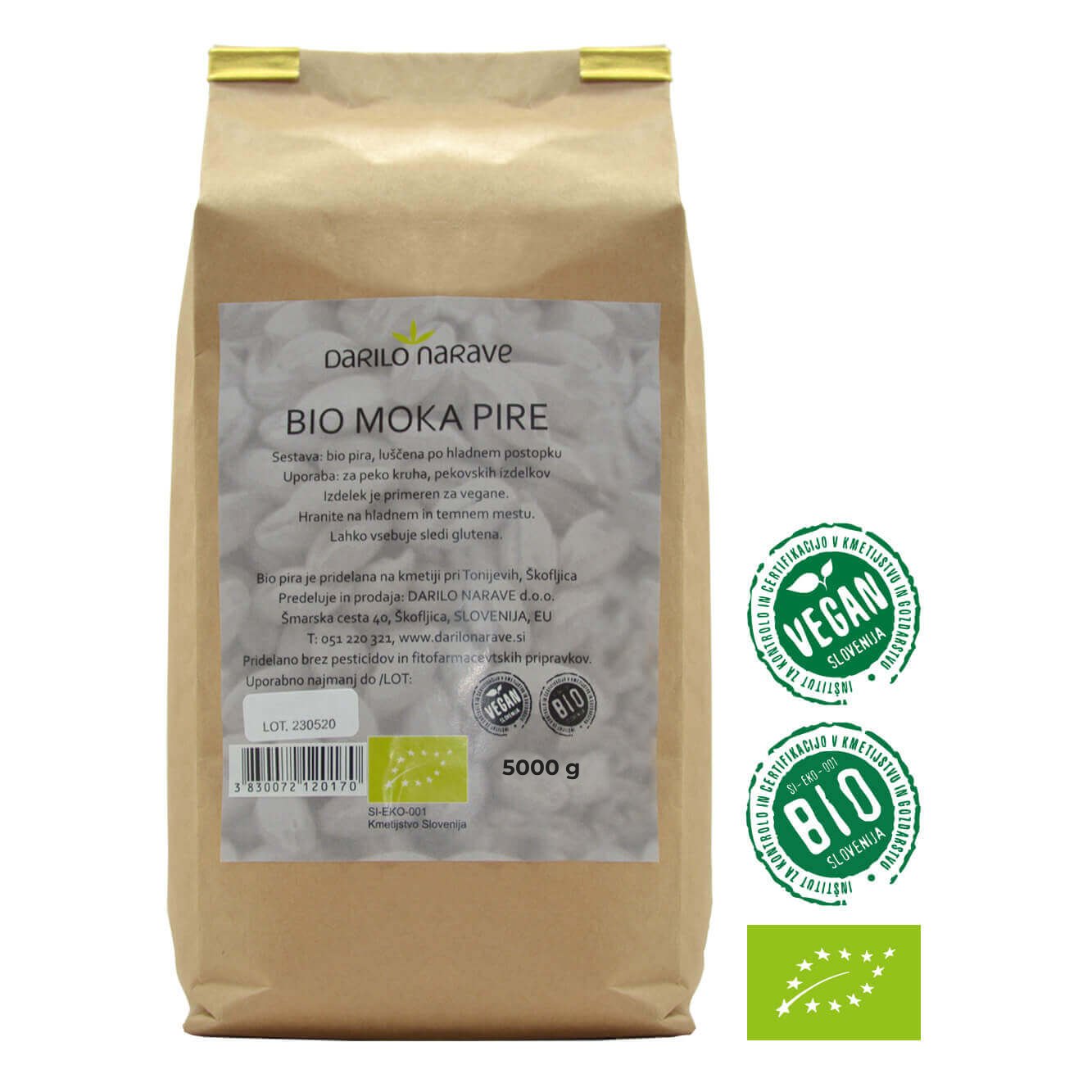 Bio pirina moka je skrbno in z ljubeznijo pridelana v Sloveniji na ekološki način, zato je moka tudi ekološko certificirana. Zaradi odličnega okusa in izjemne kvalitete je naša Bio pirina moka zelo primerna za peko sladic, peciva, kruha ipd.